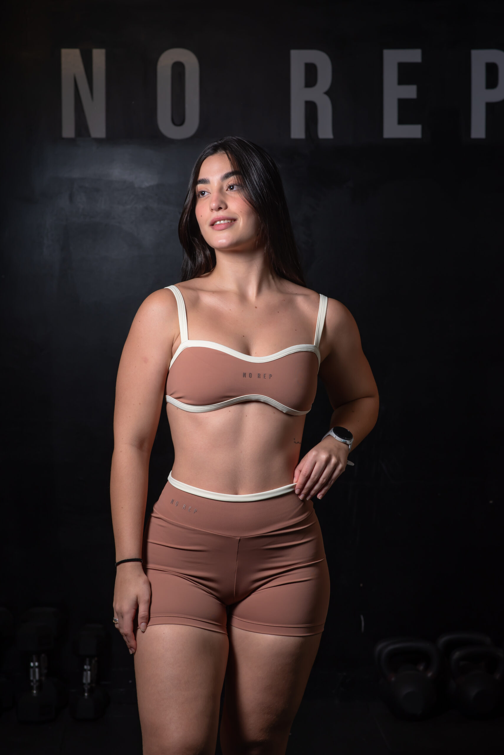 Short Bicolor Line Soft Brown c/ Off White